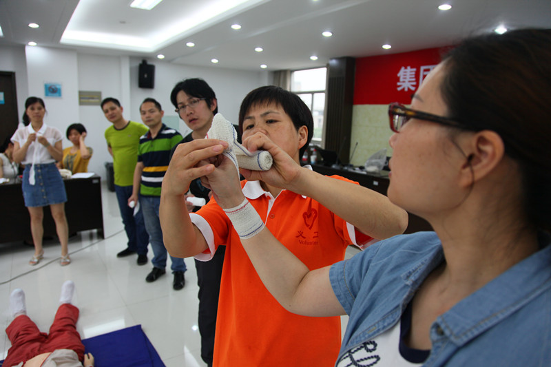 6月15日,集團機關26名員工參加了為期一天的應急救護技能培訓班,這是繼去年集團與區紅十字會聯合開展應急救護培訓“千人工程”計劃以來,第二次合作,今年分八期開展培訓,將有300多人接受教育,并經考試取得《紅十字初級救護員證》